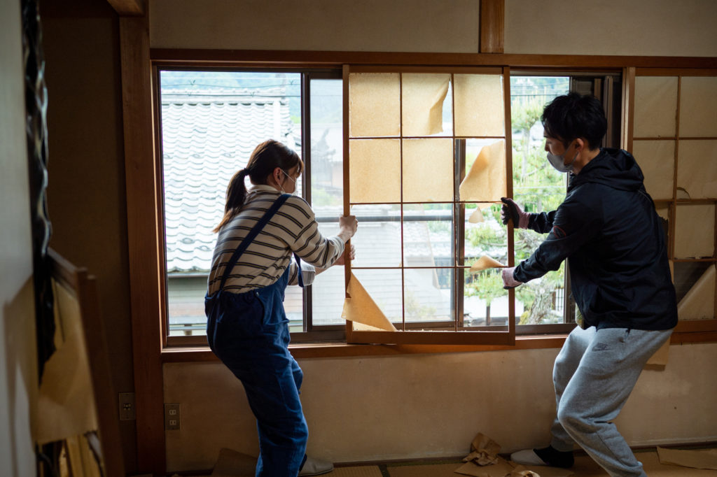 今回の小浜微住でのタメづくりとして、「GOSHOEN」の道を挟んだ隣の空き家で何かできないかと考えた。この空き家はマツ勘が西津エリアでの滞在拠点やコワーキングスペース、レンタルオフィスなどとしてこれからの活用方法を模索している物件。そこで今回の微住中にその最初の一歩をスタートさせようと、2階の一室に目をつけた。ちょうど窓からはGOSHOENも望める6畳間。見晴らしの良いところで、多少の掃除と畳さえ綺麗にすれば十分に寝ることはできる状態だった。