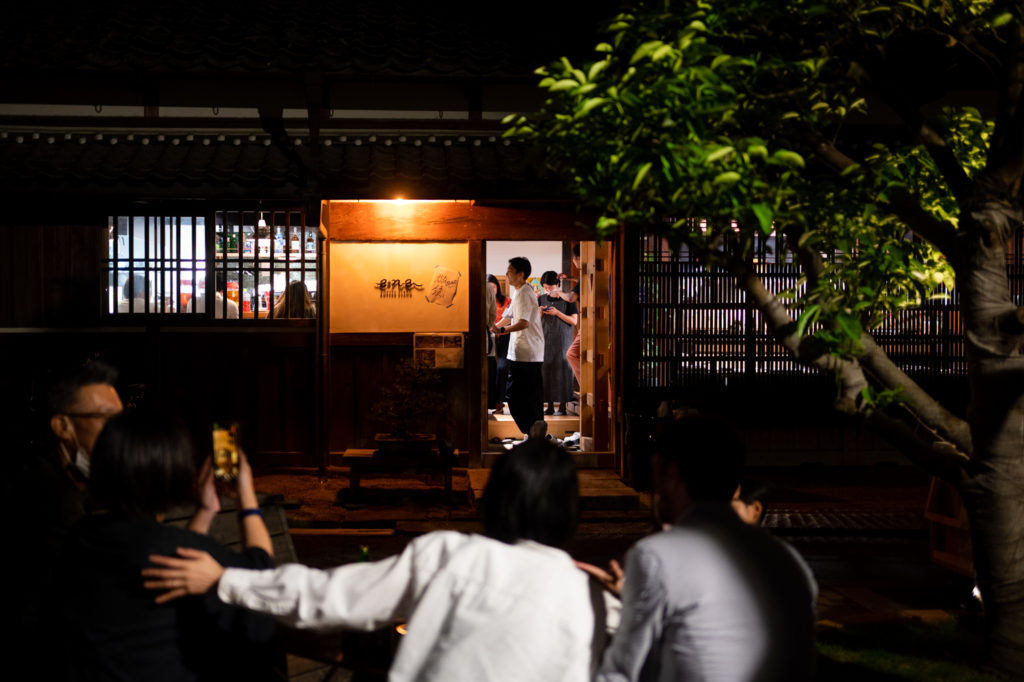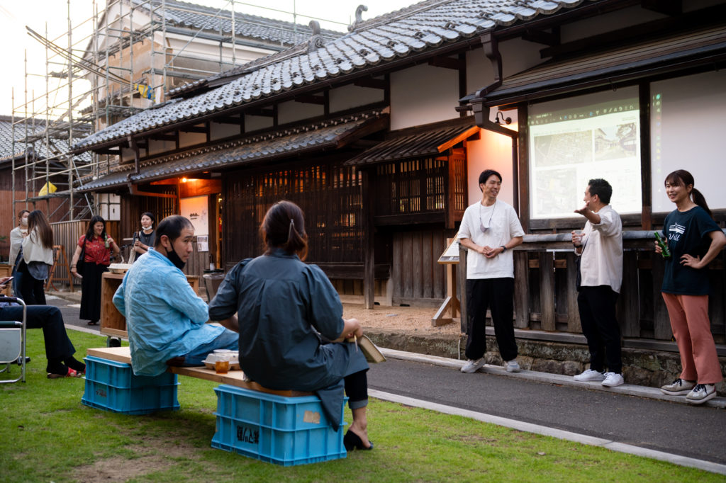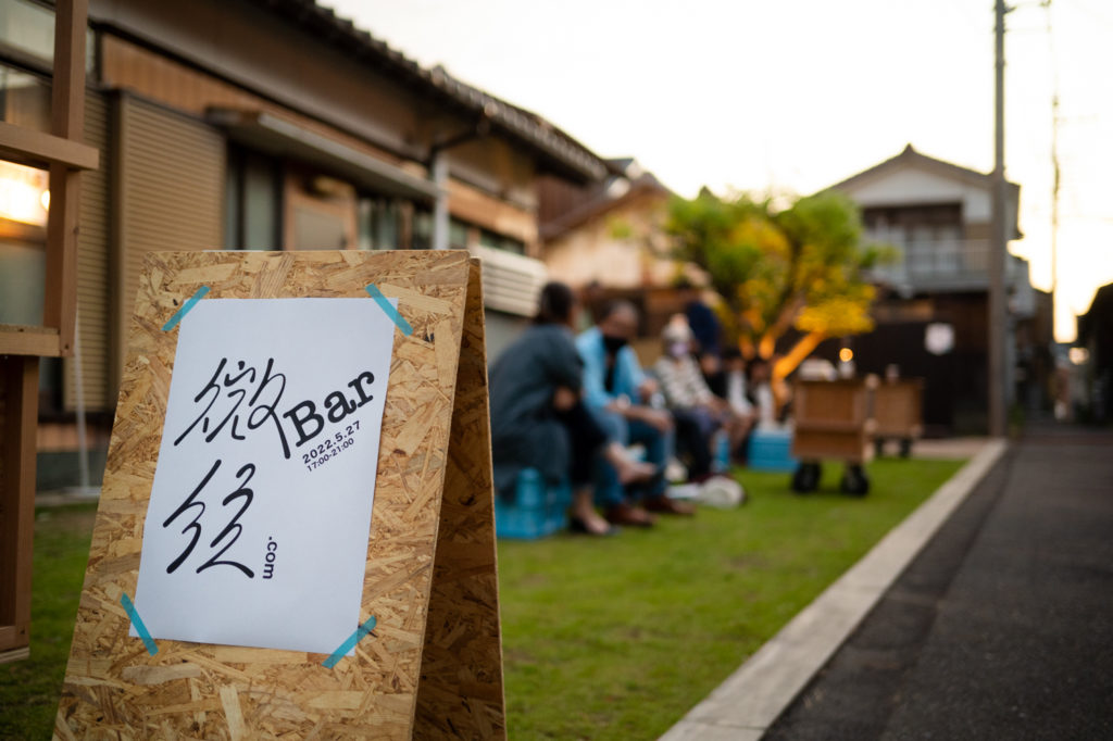 イベント当日、夕方の西津地区は最高に心地よい風が吹き、GOSHOEN前の通り続々と地元の人や嶺南のほかの市町の知人も集まってきてくれた。テーブルや椅子などを置き、「微Bar」をオープンした。