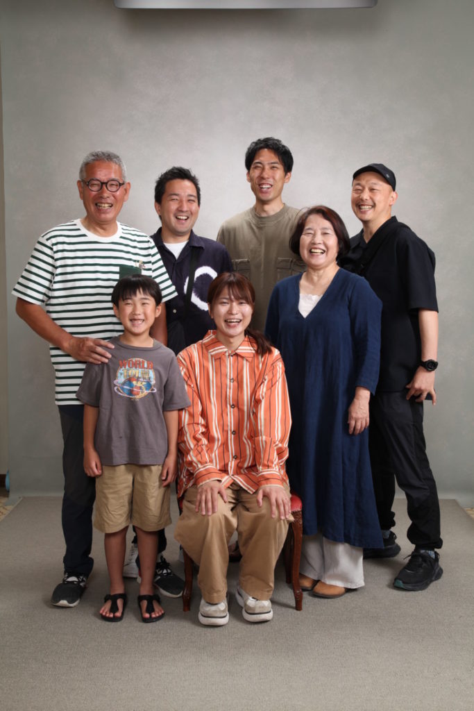 今回お世話になったほりこしさんと松本さん、そして田中家の皆さんと商店街にある昔ながらの写真館で“家族写真”を撮った。とっても不思議な関係だけど、これからも関係が続く“シンセキ”の形だ。