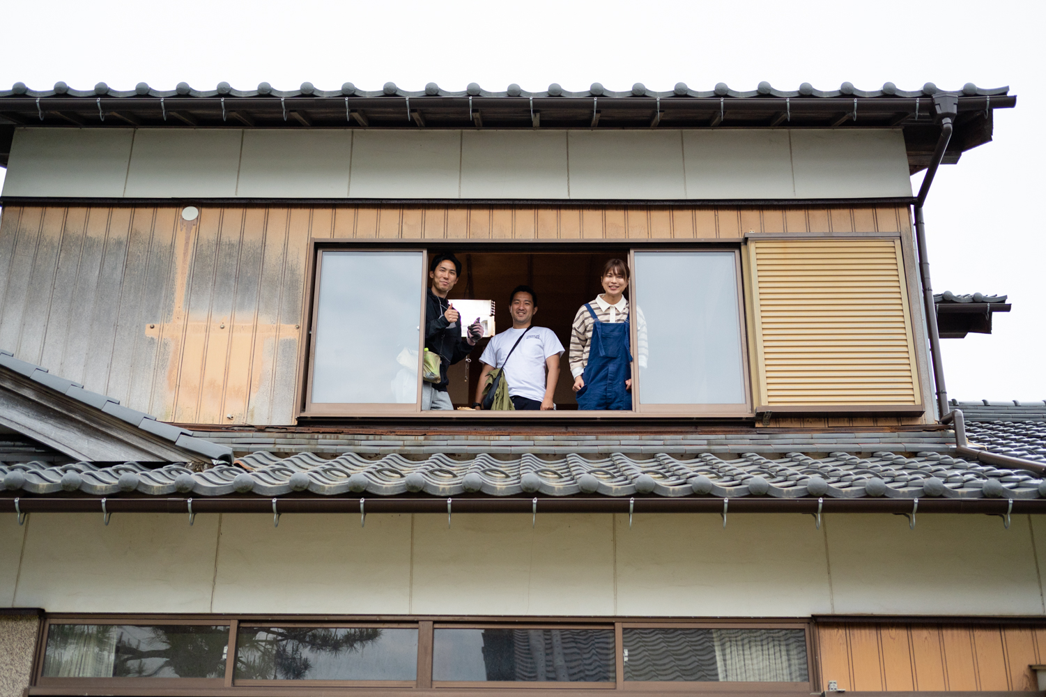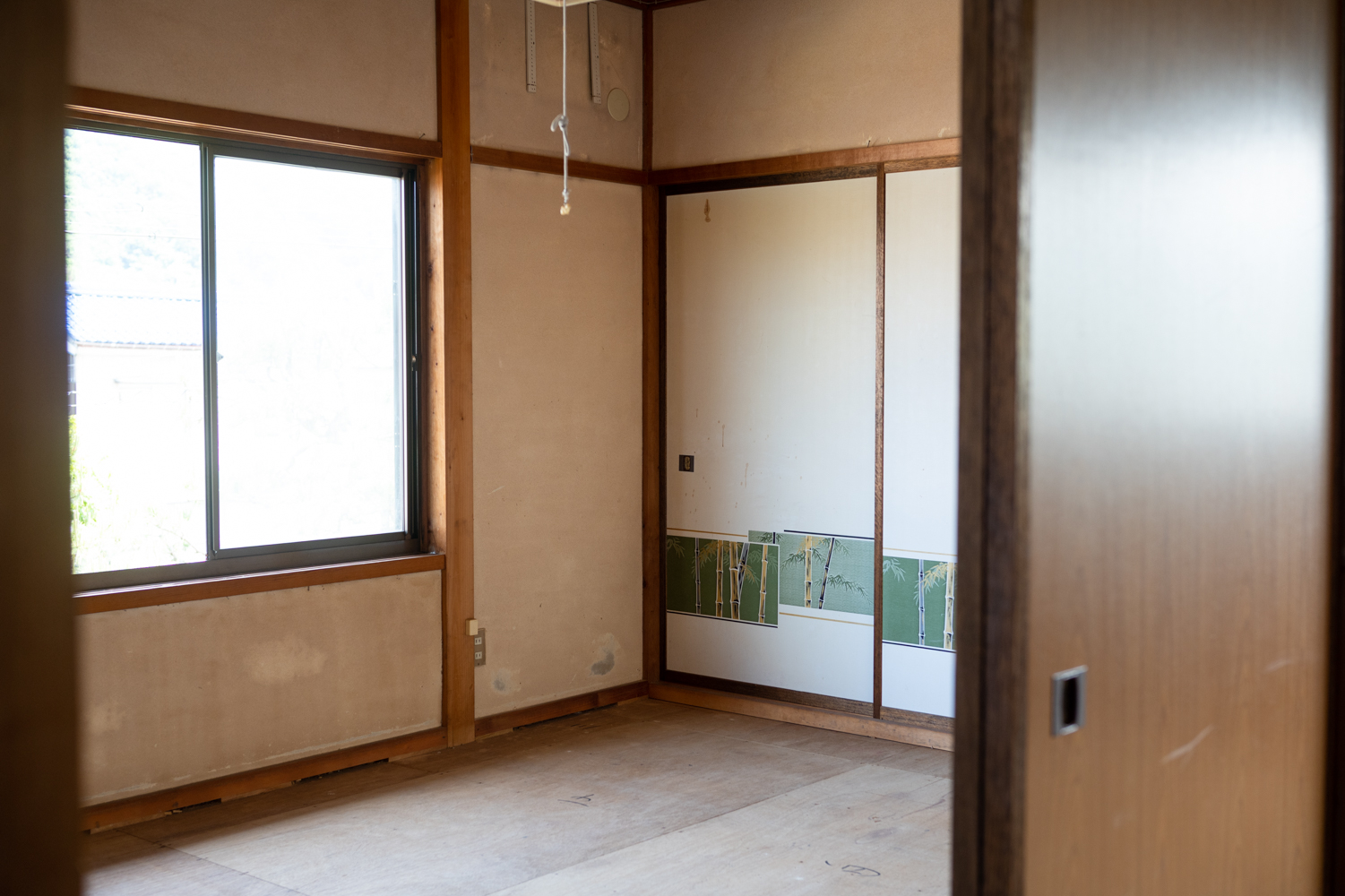 今回の小浜微住でのタメづくりとして、「GOSHOEN」の道を挟んだ隣の空き家で何かできないかと考えた。この空き家はマツ勘が西津エリアでの滞在拠点やコワーキングスペース、レンタルオフィスなどとしてこれからの活用方法を模索している物件。そこで今回の微住中にその最初の一歩をスタートさせようと、2階の一室に目をつけた。ちょうど窓からはGOSHOENも望める6畳間。見晴らしの良いところで、多少の掃除と畳さえ綺麗にすれば十分に寝ることはできる状態だった。