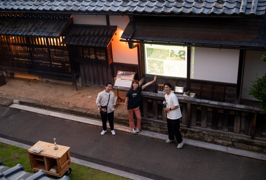 イベント当日、夕方の西津地区は最高に心地よい風が吹き、GOSHOEN前の通り続々と地元の人や嶺南のほかの市町の知人も集まってきてくれた。テーブルや椅子などを置き、「微Bar」をオープンした。