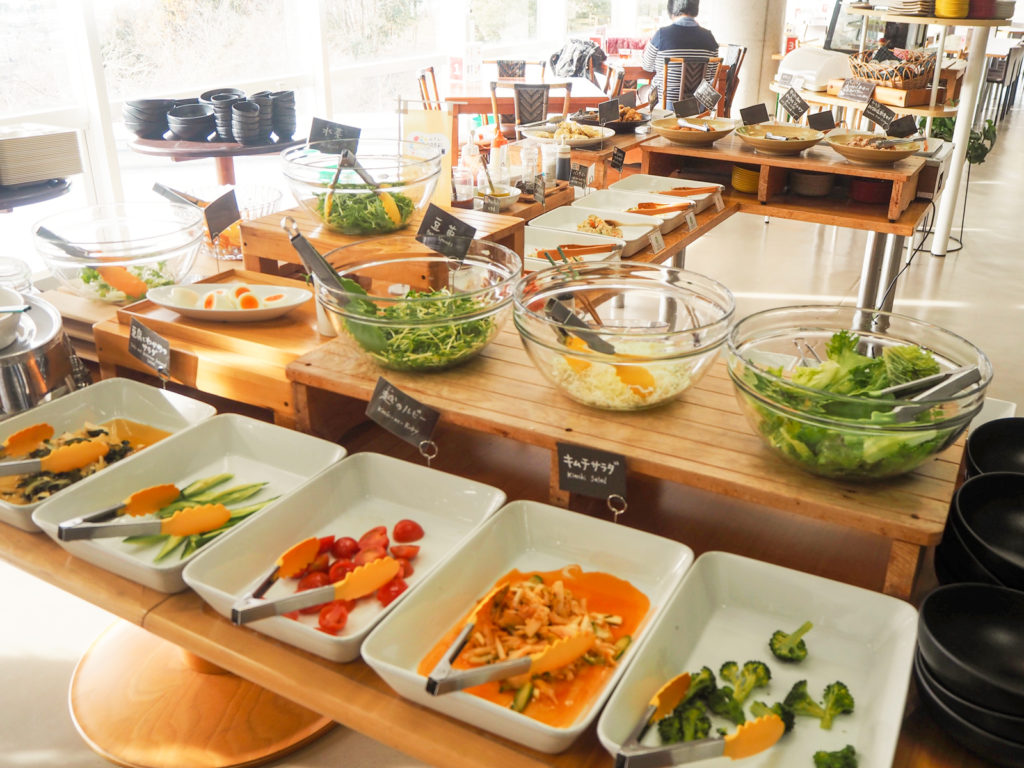 オーナーの髙野さんは食材に含まれている成分やその成分が体にどのように作用するのかなど食についてとても熱心に勉強されており、バイキングは野菜を中心とした品が多くある。野菜は新鮮でヘルシーな地元野菜が使われており、形や大きさの問題で敬遠されがちな規格外野菜も農家さんから買い取り、無駄にしないよう活用されている。