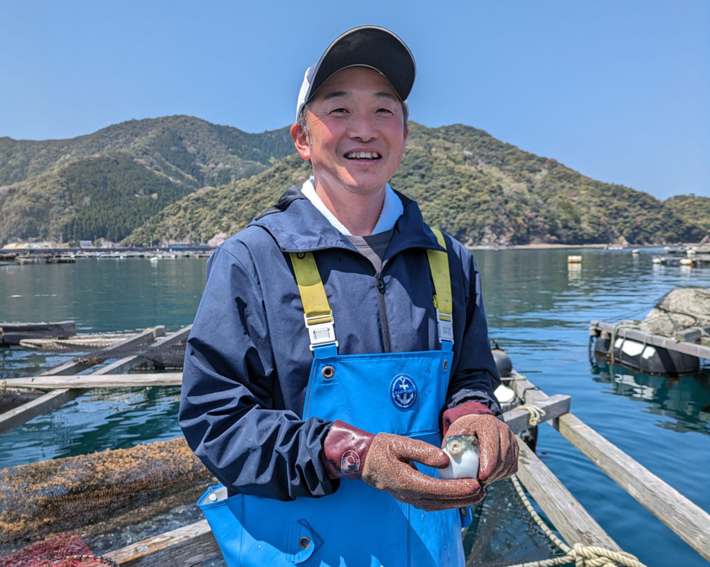 阿納では昭和62年頃からトラフグの養殖が始まり、もう少しで40年。下亟さんは学生の頃から家の手伝いとして養殖に関わり、福井県立大学を卒業後、本格的に仕事として取組み始めたそうです。