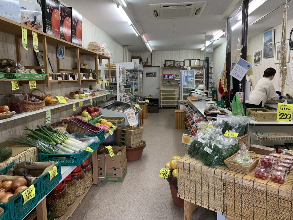 店内には、地場産のかぶらやトマト、りんごやイチゴなど旬の野菜や果物のほか、自家製の漬物、惣菜、彩りジャムなどが並んでいる。自慢の地モノ野菜は、博一さんが毎朝市場で仕入れるという。
