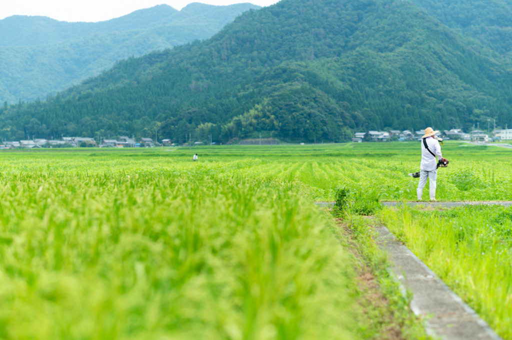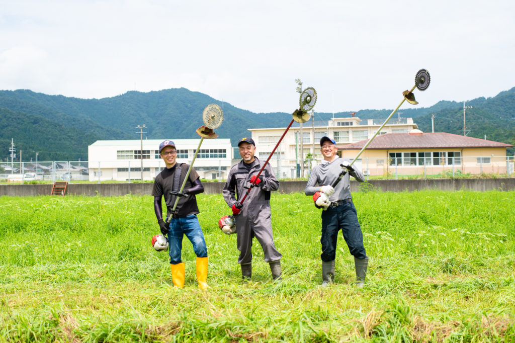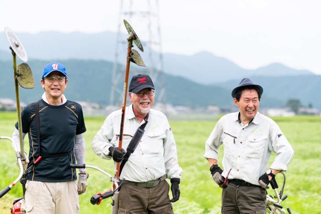 「次の年、その田んぼでお米を植えたら、肥料なしで美味しく育ったんです。それが株式会社『若狭の恵』で栽培している『ひまわり米』のきっかけ。だから、これも偶然の産物」と、竹中さんが笑うと、そばで草刈機を操作していた「若狭の恵」代表の前野恭慶さんも作業を止めて話をしてくれた。