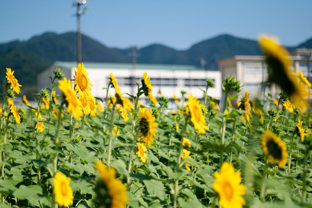 「ひまわりをやめるわけにはいきません。もちろん『ひまわり米』をつくるためというのもあるけれど、今では遠くからこのひまわり畑を楽しみに訪れてくれる人がいますから。でも、一番は地元の人に迷惑をかけずに楽しんでもらうことだと思っています。そのために、毎年どこに植えたら宮川のひまわりを楽しんで周遊してもらえるか、車を十分に停めることができるかと考えています。今年は初めての試みとして、旧宮川小学校の方にもひまわりを植えたんです。学校に車を止めることができるし、地元の人も学校の周りが盛り上がるのはきっと嬉しいでしょ。トイレも使えるし」と、軽快に話す前野さんの言葉に、去年閉校となった小学校が地域の新たなチャンスになるのではないかと期待せずにはいられない。