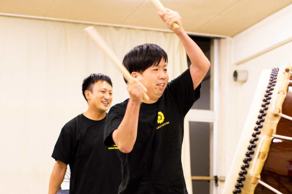 「宮川に生まれたら、小さな頃から太鼓を習うんです。だから、みんな太鼓が叩けるんですよ」そう話してくれたのは、竹中裕一さん。「私たちは、去年『華鼓宮(ハナツヅミ)』という名前の太鼓チームを結成して活動しています。名前は『花の里 宮川』と太鼓を掛け合わせて作りました。めちゃくちゃ悩みましたが、宮川らしいチームを表現しようと思ったら“華”は欠かせないなって」。名前を聞いただけで、地域への思いが強いことが分かる。シンボルマークは、もちろんひまわりだ。