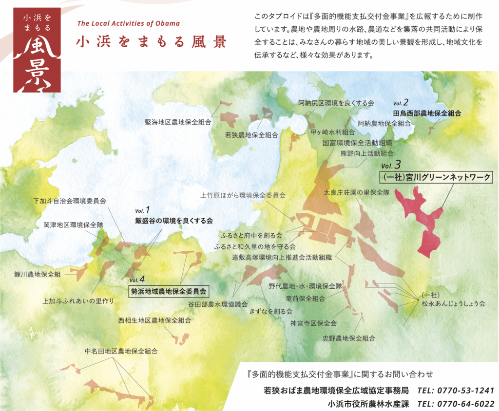 小浜の風景をまもる人や活動を伝えるパブリックマガジン『小浜をまもる風景』は、小浜市内の各公民館または、小浜市役所2階の農林水産課前で配布しています。このWebバージョンとは違う写真も掲載しておりますので、是非お手にとってご覧ください。
