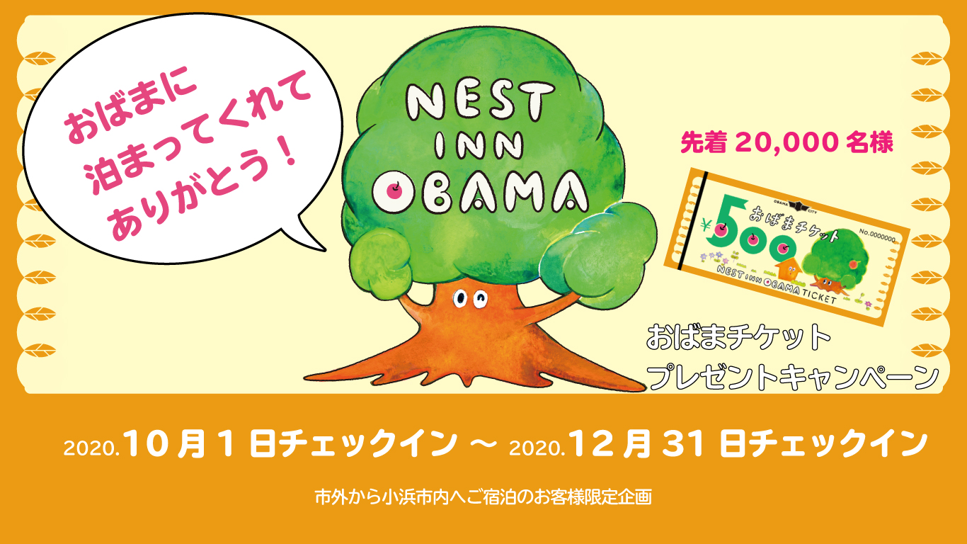 小浜市では、市外からお越しでご宿泊のお客様、先着2万名様を対象に地域商品券「おばまチケット」をプレゼントする「ようこそ小浜へお客様歓迎事業」を実施中です!