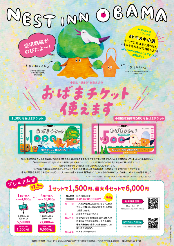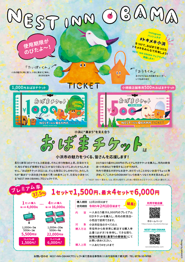 小浜の暮らしに、ゆとりと元気をつくる『おばまチケット2022』使用期限延長!(2022/12/1更新)