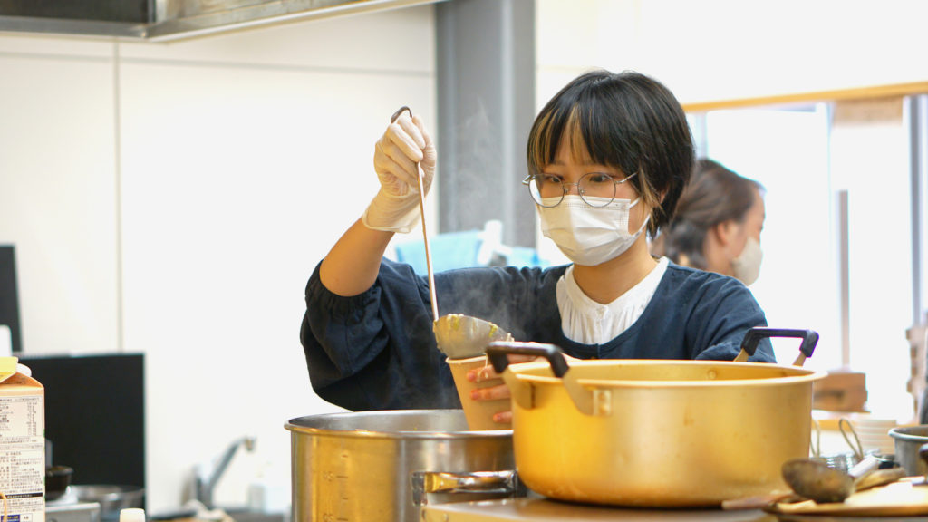 収穫祭では、参加者がTEtoKIのキッチンを借りてスープづくりを行っていた。