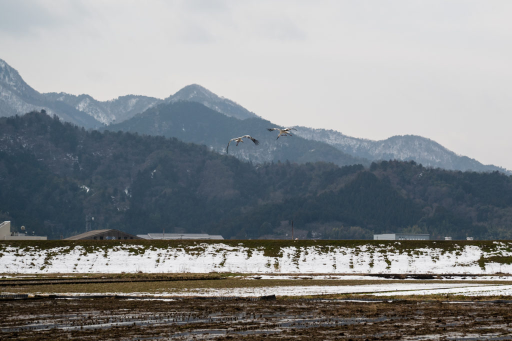 手入れの行き届いた圃場には、コウノトリも飛来する。