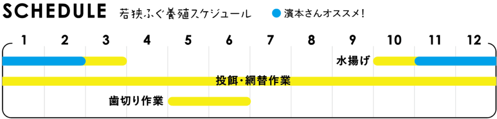 日本海側では珍しいリアス式海岸の恩恵を受け、波が穏やかな若狭湾では、ふぐ養殖をすることができます。年間通して食べることはできますが、冬場の低水温がギュッと身を引き締めた日本最北で育てるふぐの味は絶品です!