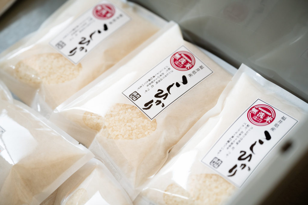 少量パック詰や真空パック詰め、無洗米商品などの便利な精米商品づくりをしています。幅広い世代と立場の人に選んでもらえるようなパッケージ、米袋も重要なポイントです。前職で営業職を長年やっていたので、その経験を活かして自分の商品は自分で営業を行い、販売につなげています。それこそ、農業を始めたばかりの頃は今では考えられないほどガムシャラに営業していましたね(笑)
