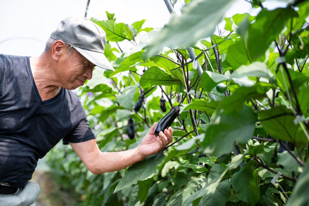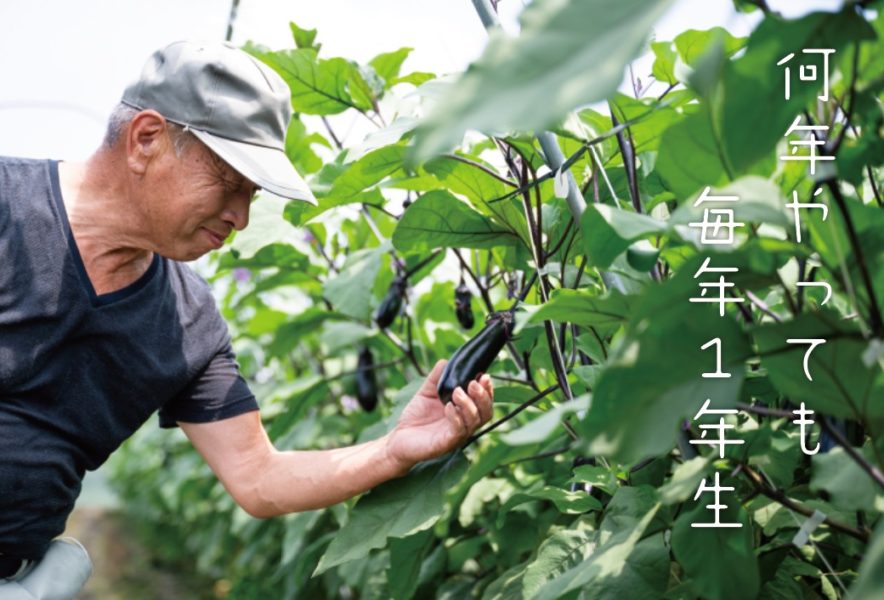 おいしいナスを作るには、とにかく手間をかけてあげること。1日1回は畑に顔を出すと、必ずやることが見つかります。1日でも畑に行かないと心配で心配で。