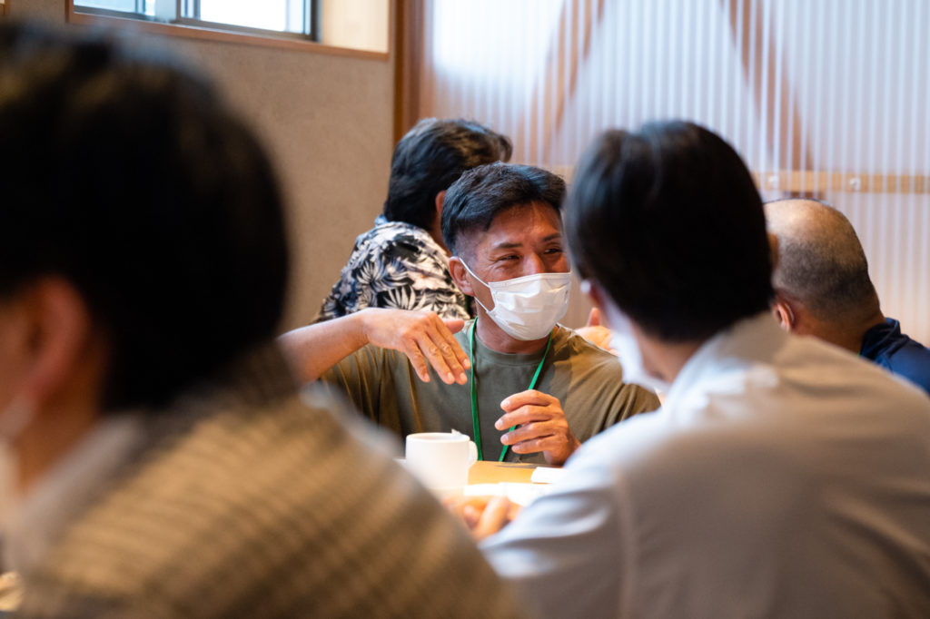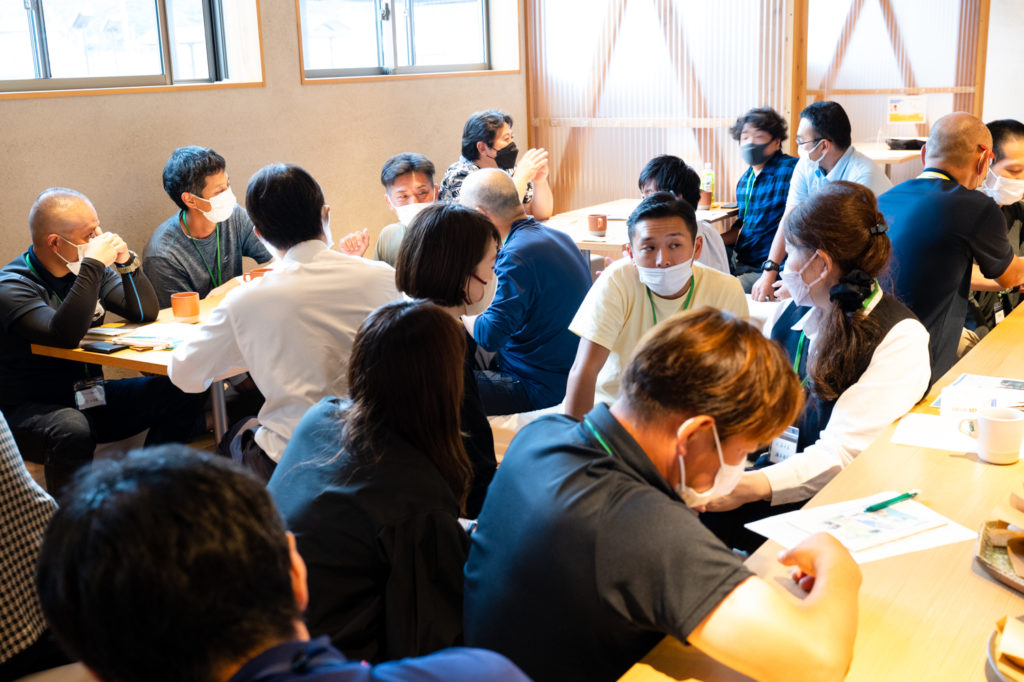 自身で養殖から民宿での調理提供も行っている河原さんは、何か新しい調理法や食べ方など別のアプローチの方法があれば知りたいということで今回来てくださったとのこと。他の飲食店や生産者とさまざまなアイディアを出し合ったり、「民宿かどの」の角野さん(民宿経営・へしこ製造販売)と「伊勢屋」の上田さん(和菓子製造販売)は、双方の製造工程やアイディアを共有しながら、「こんな商品を作れたら新たな小浜土産になるのでは?」「自分の生産物でもっといろいろな人に試作品を作ってほしい(角野さん)」と、その場で商品開発をするような意見も出ました。
