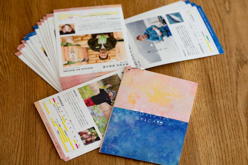 NEST INN OBAMAでは、これまで「食のローカルヒーロー」(小浜の食文化を盛り上げ、支える生産者や料理人のこと)として、小浜市の生産者を独自に取材し、見える化する取り組み「おいしいOBAMA旅するCARD」を進めてきました。2022年10月時点で、取材した生産者さんはおよそ40名。カードとなった生産者さんの紹介カードは、実際にその食材を使用する飲食店の店頭で掲出いただいたり、スーパーの野菜売り場で紹介いただき、小浜市内でも目にする機会が増えました。