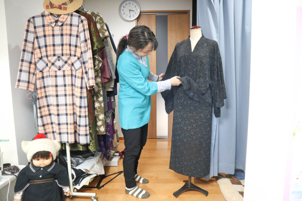 「和裁所を修了した時は、もう二度と針と糸は持たないぞ!と思った。一生分縫ったから。それで和裁とは関係の無い会社で13年働いたんだけど、もう一度勉強してみたいと思ったの。なんで着物を着なくなってしまったのだろうって。」