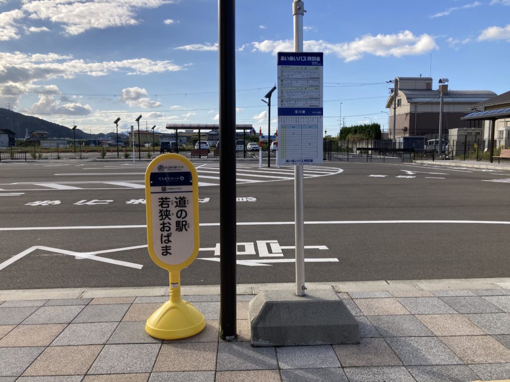 駐車場が広くなった「道の駅 若狭おばま」に車を停めて、いざバス停へ。